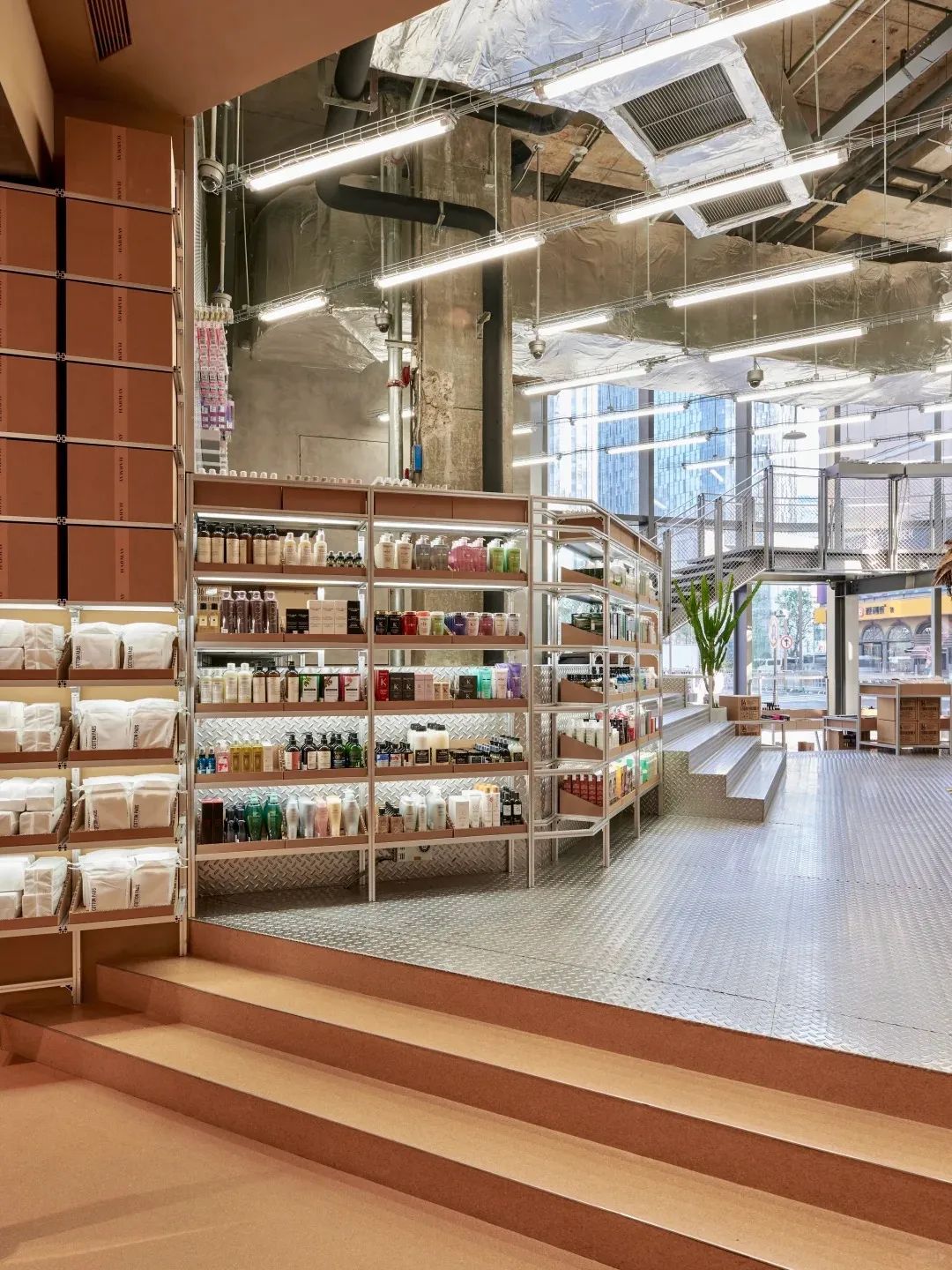 走進(jìn)話梅的最新門店,熟悉的倉儲(chǔ)風(fēng)依然在,裸柱、高密度貨架、簡(jiǎn)潔的工業(yè)設(shè)計(jì),但細(xì)節(jié)里藏著八年迭代的巧思。