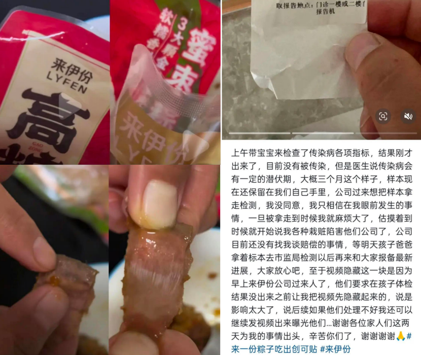 事件溯源顯示,江蘇宿遷消費(fèi)者蘇女士于5月10日在來伊份門店購買的“高粽”系列蜜棗粽中發(fā)現(xiàn)異物,蘇女士在視頻中情緒激動(dòng)地表示:“給孩子喂粽子時(shí)發(fā)現(xiàn)的,這明顯是創(chuàng)可貼,上面還有血跡!