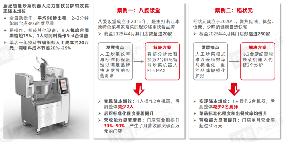 比如,中式米飯快餐品牌八婺飯?zhí)、稻狀元,中式正餐品牌湘府里、尋湘地帶以及海底撈旗下子品牌從前印象等眾多連鎖餐飲品牌,均借助廚紀(jì)智能炒菜機(jī)器人邁向高效化、標(biāo)準(zhǔn)化與創(chuàng)新化的運(yùn)營(yíng)新階段。