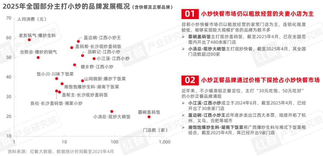 同時(shí),部分小炒正餐品牌開(kāi)始通過(guò)“30元吃飽、50元吃好”的價(jià)格策略向小炒快餐市場(chǎng)滲透,比如小江溪·江西小炒、藍(lán)邊碗·江西小炒王等品牌近年發(fā)展勢(shì)頭較猛。