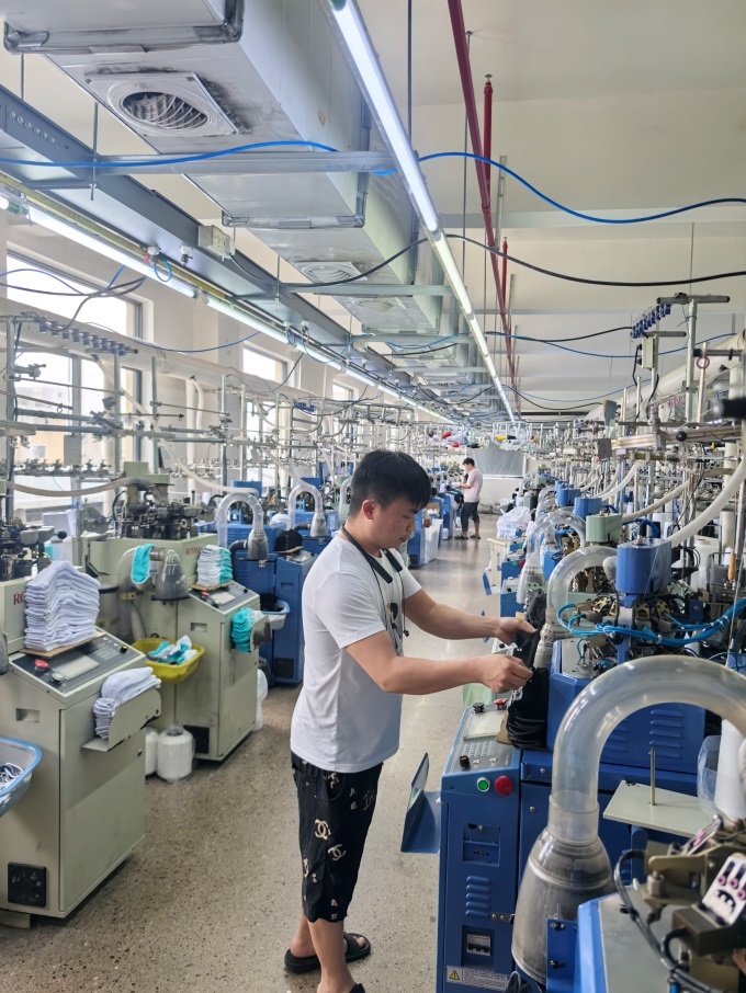 璟文進(jìn)出口的產(chǎn)線上有200多臺(tái)襪子機(jī),每臺(tái)機(jī)器每天能生產(chǎn)300-400雙襪子。吳慶芬算了算目前手頭的訂單,產(chǎn)線估計(jì)要開(kāi)始滿(mǎn)負(fù)荷運(yùn)轉(zhuǎn)了,光是那30萬(wàn)雙襪子的訂單,就要到6月底才能生產(chǎn)完畢。