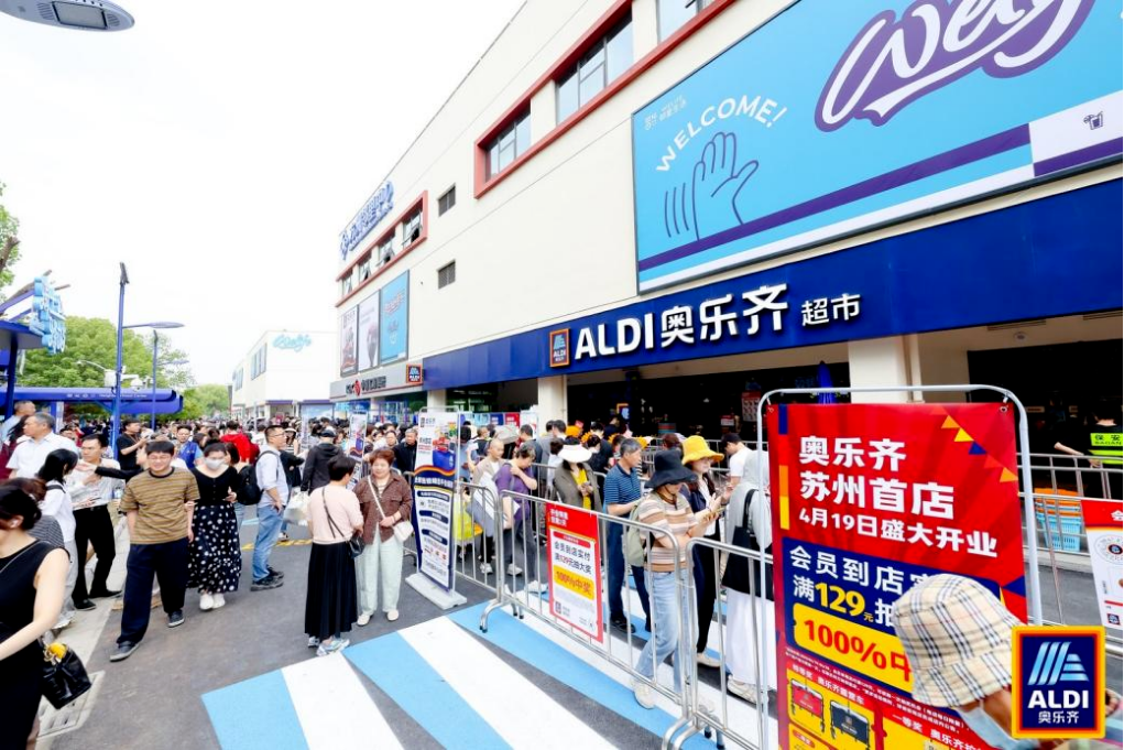 5月10日,平價(jià)超市巨頭奧樂(lè)齊(ALDI)昆山首店開(kāi)業(yè)當(dāng)日,客流突破10萬(wàn)人次,單日銷售額高達(dá)110萬(wàn)元,不僅刷新了自身在無(wú)錫創(chuàng)下的百萬(wàn)級(jí)紀(jì)錄,更為縣域零售市場(chǎng)激起“大浪花”。