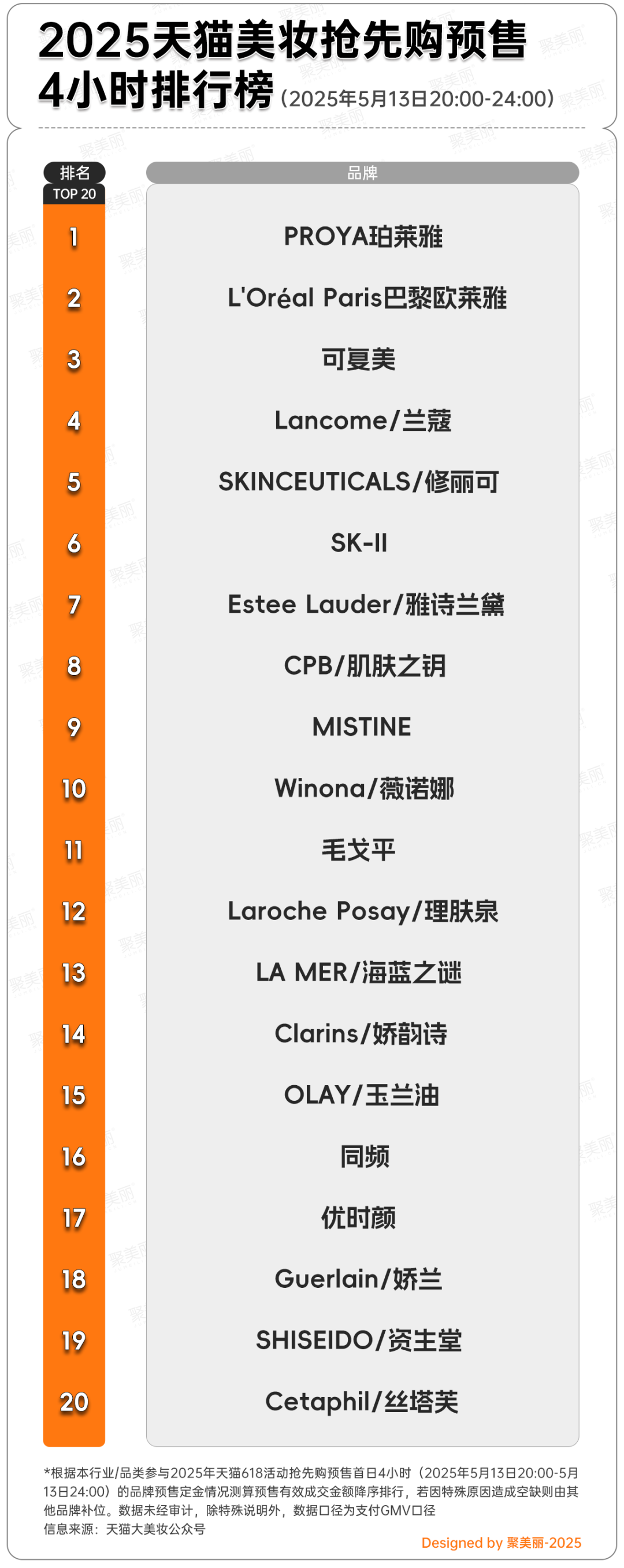 結合天貓大美妝于5月14日發(fā)布的“2025天貓美妝搶先購預售4小時排行榜”排名來看,國際美妝品牌搶占七成的榜單席位,但值得注意的是,在這場搶位大賽中,國貨品牌珀萊雅、可復美分別位列TOP1、TOP3,占據(jù)榜單前列,薇諾娜則居于TOP10,毛戈平緊隨其后,另外,同頻(錦波生物旗下)、優(yōu)時顏則分別在第十六、十七名。