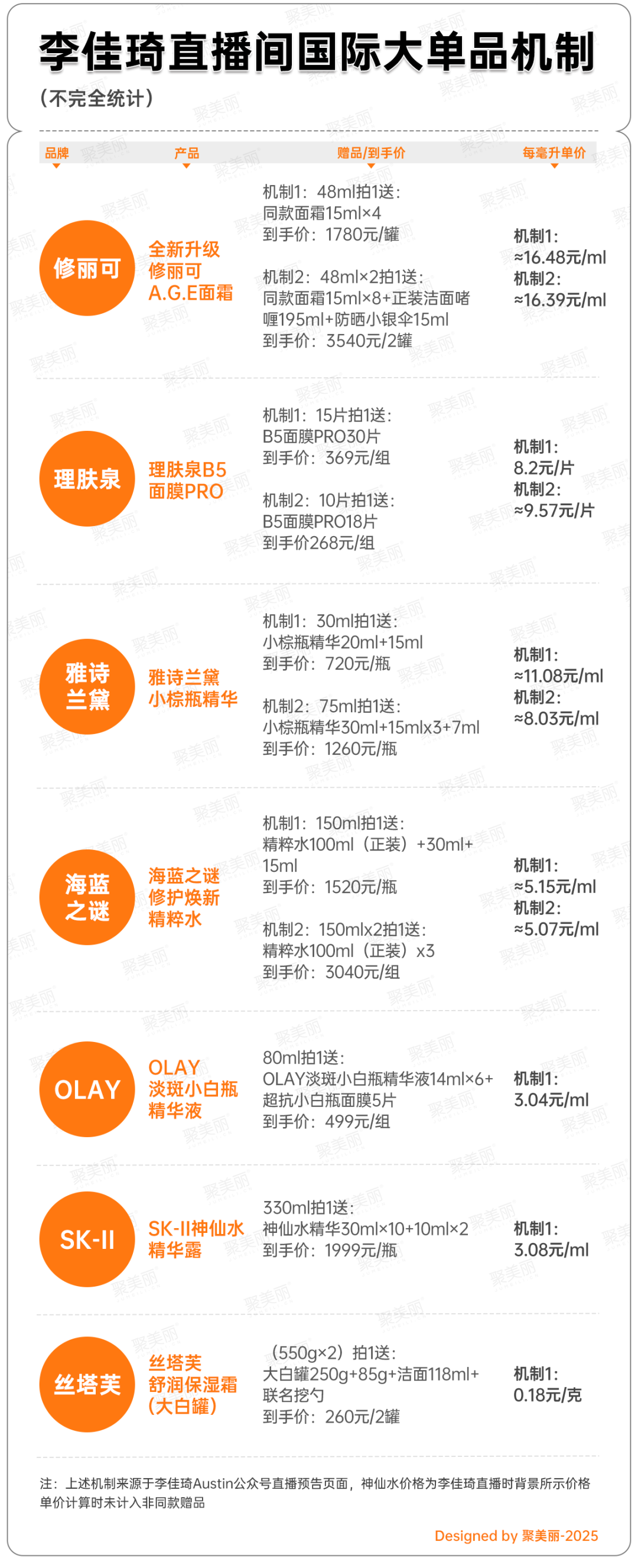 信息來源:李佳琦直播間、李佳琦Austin公眾號、新浪科技、劉章明消費產(chǎn)業(yè)研究、天貓大美妝、天貓國際公眾號、小紅書、方正商社