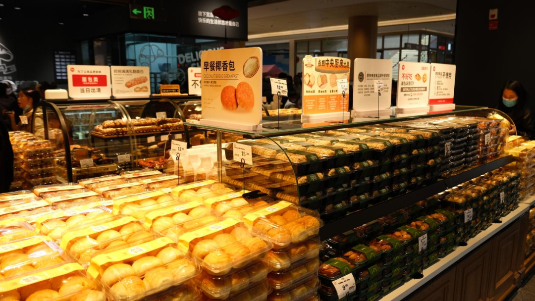烘焙熟食區(qū)則以“現(xiàn)制煙火氣”聚客,潼關(guān)肉夾饃、現(xiàn)泡檸檬鳳爪、網(wǎng)紅歐包等地域特色與健康理念兼具的爆款頻出,還有各種本地化口味也成為集客關(guān)鍵。