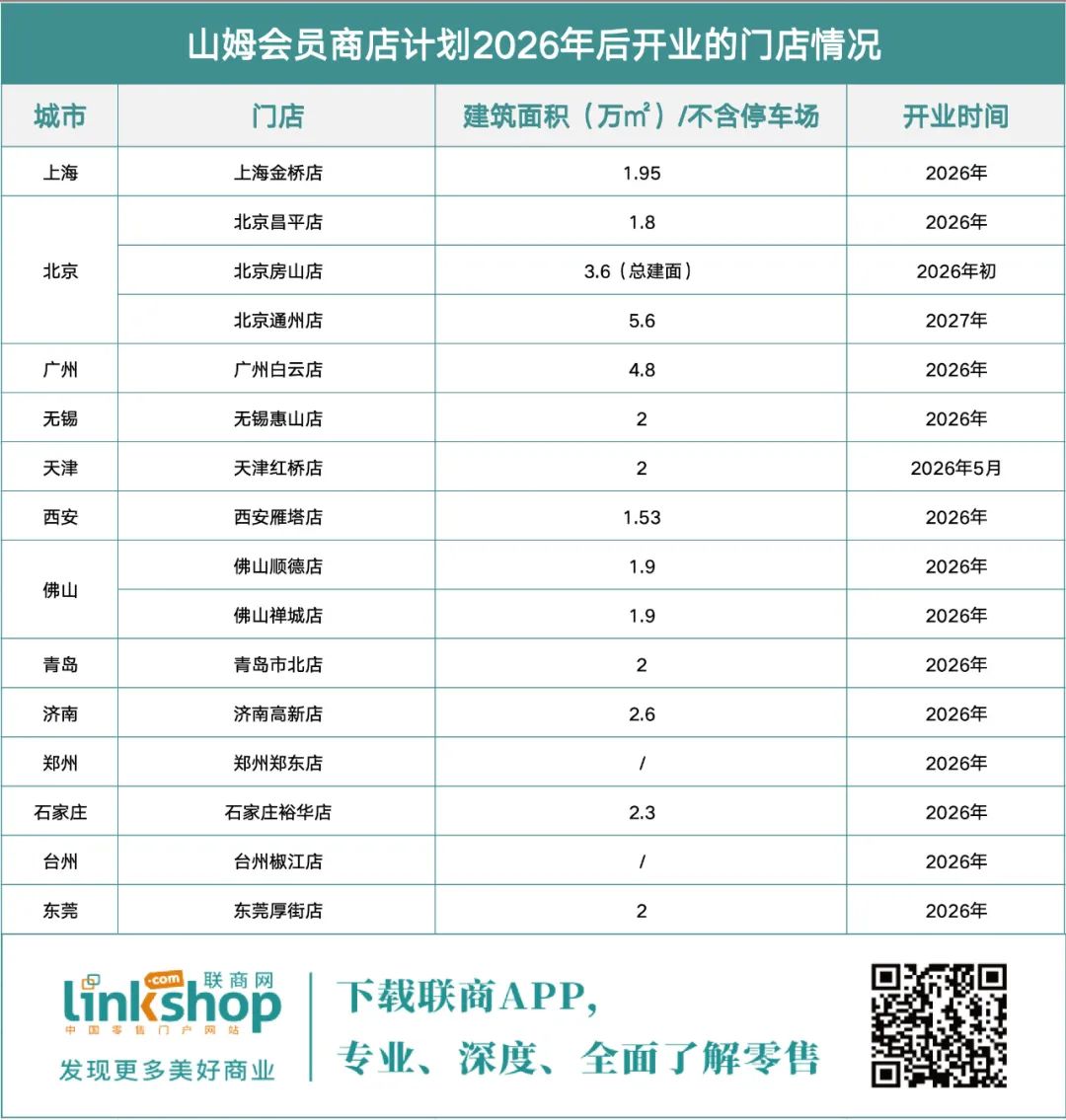 據(jù)聯(lián)商網(wǎng)統(tǒng)計(jì),截至目前,全國(guó)已經(jīng)開業(yè)的山姆會(huì)員店達(dá)55家,今年5月至2026年年底,至少還有20家山姆待開業(yè)。