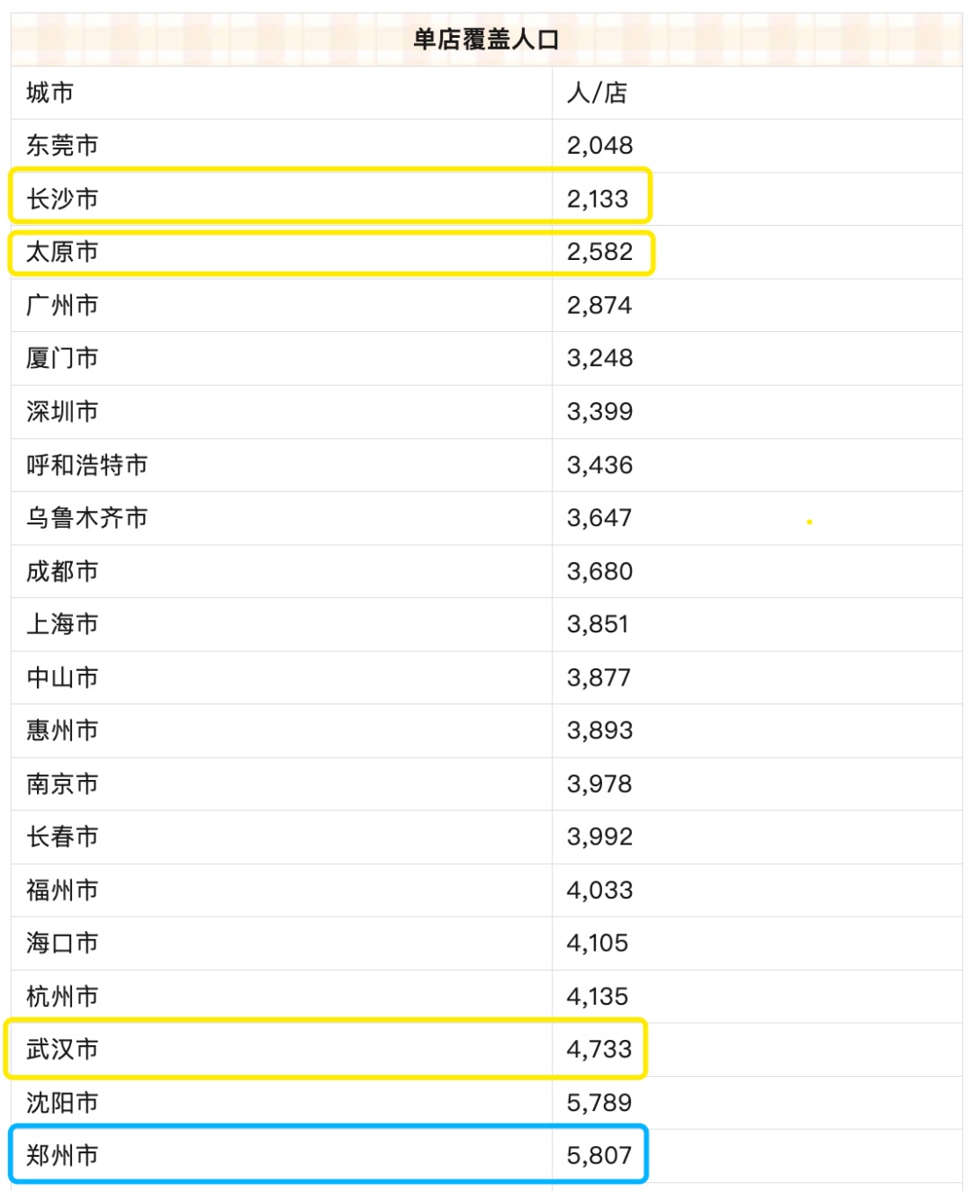 值得注意的是,單店覆蓋人次在4000以下的14座統(tǒng)計(jì)城市中并沒(méi)有鄭州,而與鄭州距離相近的山西太原市,便利店人均覆蓋數(shù)為2585人/店,位列全國(guó)第三。