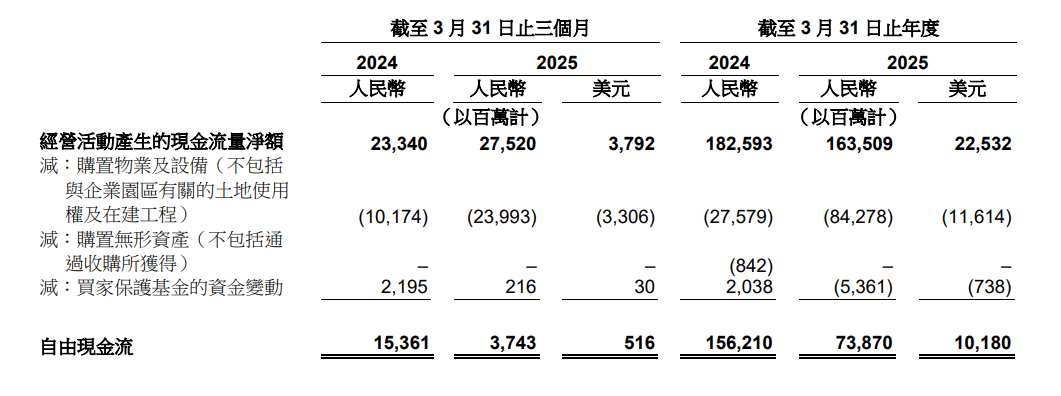 財(cái)報(bào)中,2025財(cái)年的自由現(xiàn)金流為738.7億元,同比下降53%,其主要原因,就是由于云基礎(chǔ)設(shè)施支出增加?梢钥闯觯⒗镆呀(jīng)做好了AI+云業(yè)務(wù)的長(zhǎng)期準(zhǔn)備,也準(zhǔn)備好了足夠的備戰(zhàn)資金。
