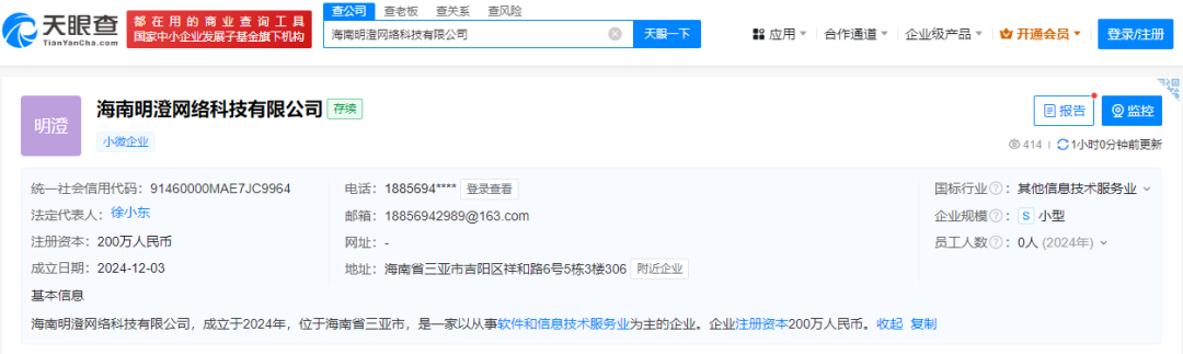 如今改換淘寶直播后,她所在的MCN不再是“三只羊”,而是顯示為“明澄網(wǎng)絡”。天眼查信息顯示,該公司全稱海南明澄網(wǎng)絡科技有限公司,于去年12月剛剛成立,當時的三只羊還在停業(yè)整頓。