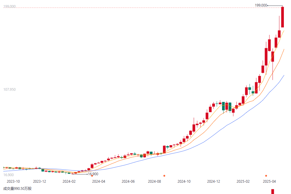 泡泡瑪特2023年10月-2025年4月股價(jià)曲線圖
