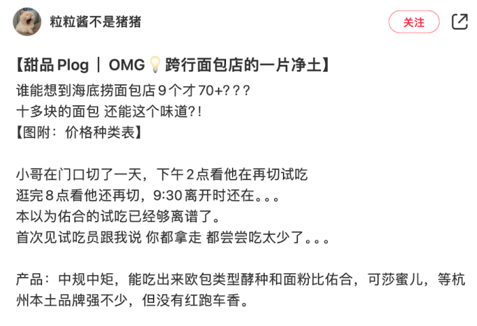 截至發(fā)稿,拾㧚耍開業(yè)已有21天。在小紅書上,搜索“海底撈面包”的關(guān)鍵詞,也有不少關(guān)于這家門店的討論。