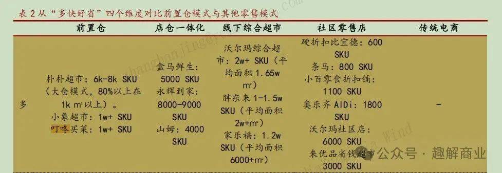 從品類來看,SKU最高的是小象超市和叮咚買菜。華西證券研報顯示,小象和叮咚買菜SKU都在1W+以上;其次是京東七鮮(大倉6000+)、盒馬(5000+)。