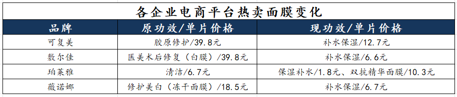最后,面膜品類(lèi)頭部先后面臨質(zhì)疑,面膜市場(chǎng)向“大品類(lèi)、小品牌”模式靠攏,行業(yè)回歸樸素。