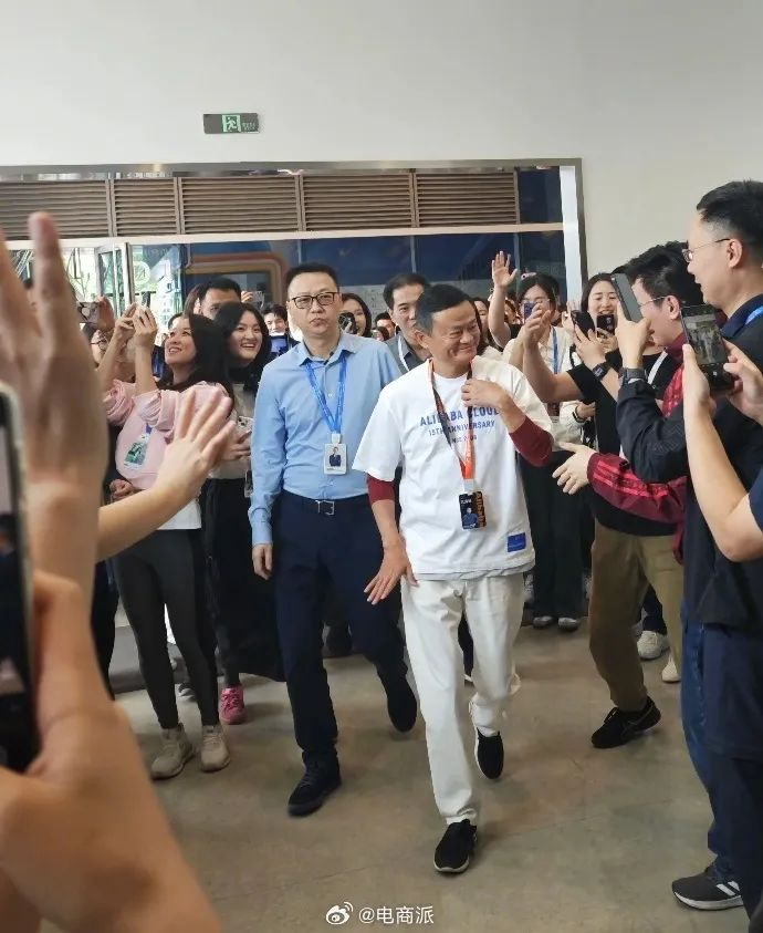 4月10日當(dāng)天,正值阿里云15周年紀(jì)念日,馬云身穿白色T恤,佩戴了阿里新版工牌,衣服還印有“阿里云15周年紀(jì)念日”的英文字樣。