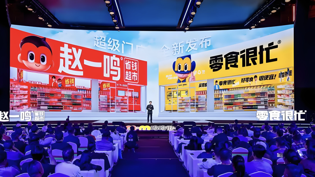 三只松鼠也通過(guò)收購(gòu)愛零食、愛折扣等量販品牌,正式加入賽道,并喊出“三分天下”的戰(zhàn)略目標(biāo)。章燎原在2024年11月的品銷大會(huì)上就直言,2025年應(yīng)該是從量販零食到“量販零食+”以及全品類折扣超市真正的元年。三只松鼠未來(lái)所有的商品,都是硬折扣化。