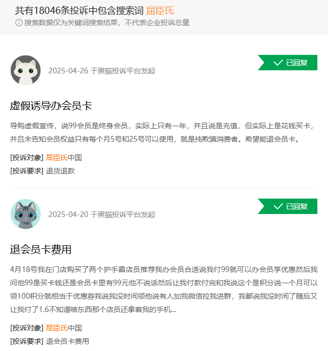 被吐槽最多的莫過于屈臣氏過度“熱情”的導購,在業(yè)績壓力的影響下屈臣氏的導購幾乎人人都有著注冊會員的任務,同時還會給消費者進行瘋狂推銷,使得購物體驗大打折扣。黑貓投訴平臺上,有關屈臣氏的投訴量已經超過18000條,大多集中在誘導辦理會員卡、退卡流程,霸王條款等。
