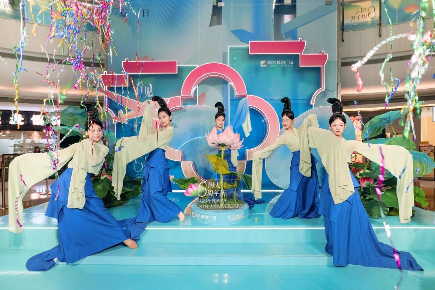 慶典現(xiàn)場精彩紛呈:《只此青綠》舞蹈詩劇以水袖流轉再現(xiàn)宋畫神韻;國風Live以箏鼓和鳴喚醒千年文化記憶;「夏日貨郎圖」劇場互動則讓顧客沉浸于宋韻的煙火氣息中。藝術與生活的邊界在此消弭,國大用八年時間證明:商業(yè)空間不僅是消費場所,更是城市文化的孵化器。