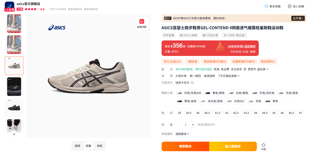 在亞瑟士天貓旗艦店上,熱銷的鞋型如Contend 4、Kayano 31、GT-2000 12等,均是其經(jīng)典系列成員。其中,Kayano、GT-2000系列誕生于1993年,Contend系列更是已更新至第四代。