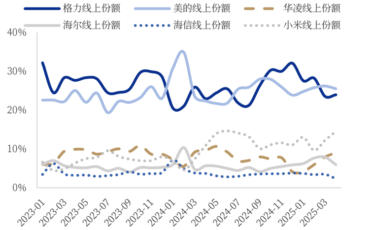 圖:空調(diào)線上零售市場主要品牌份額變化 資料來源:AVC,銀河證券
