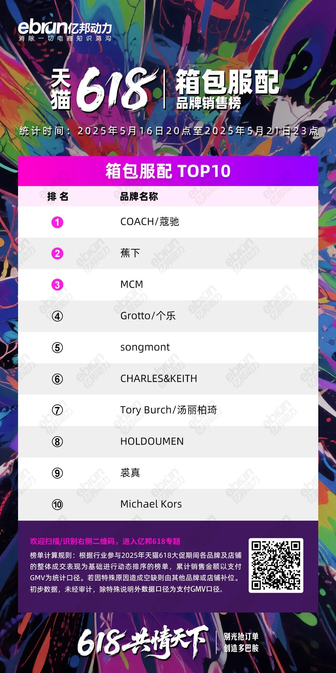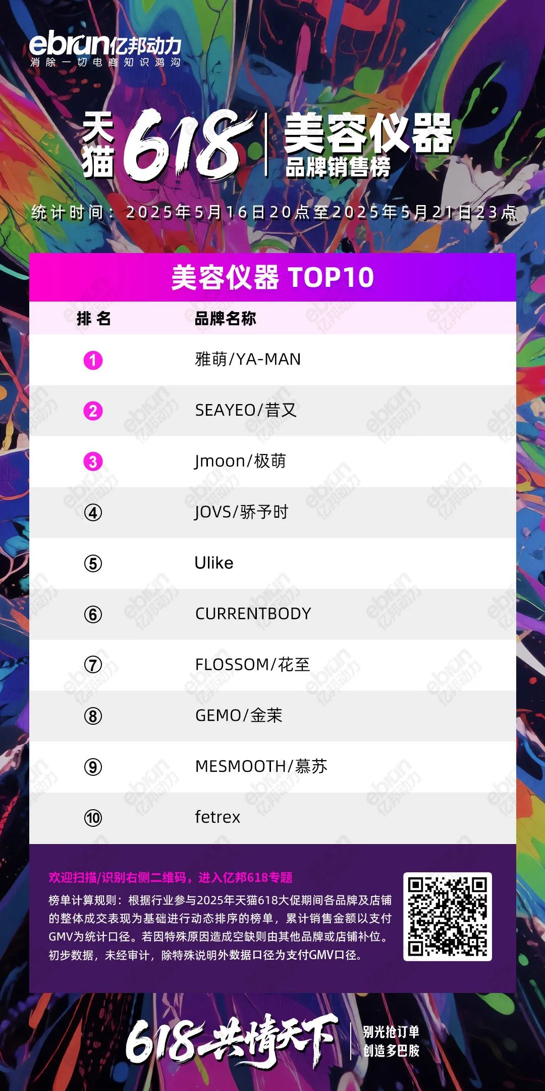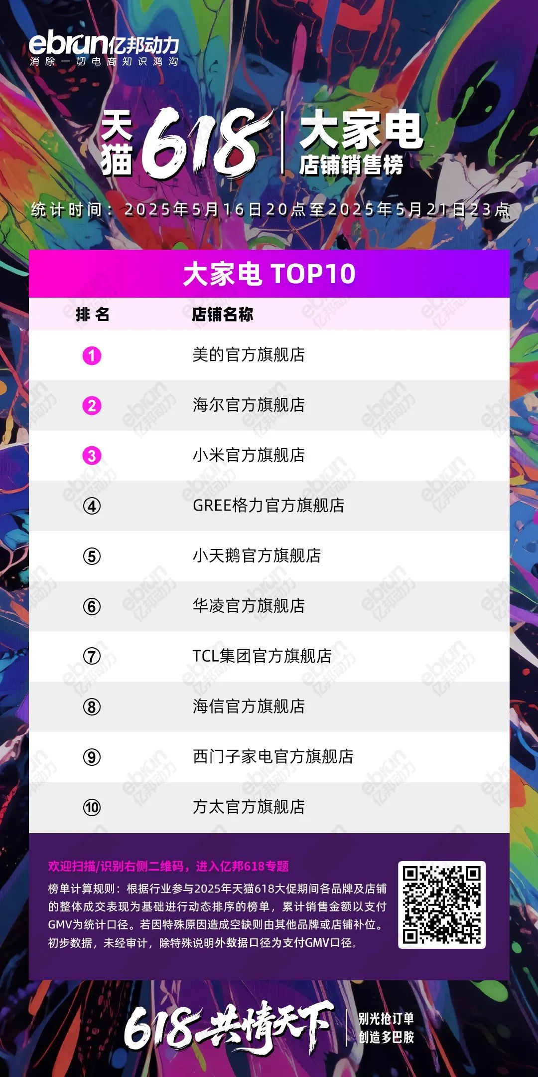 根據(jù)行業(yè)參與2025年天貓618大促期間各品牌及店鋪的整體成交表現(xiàn)為基礎(chǔ)進(jìn)行動(dòng)態(tài)排序的榜單,累計(jì)銷售金額以支付GMV為統(tǒng)計(jì)口徑。若因特殊原因造成空缺則由其他品牌或店鋪補(bǔ)位。初步數(shù)據(jù),未經(jīng)審計(jì),除特殊說(shuō)明外數(shù)據(jù)口徑為支付GMV口徑。