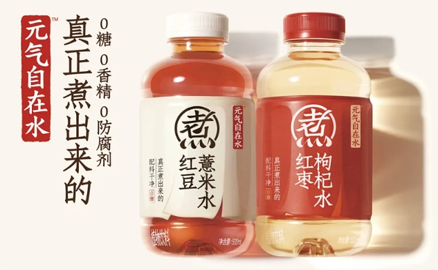 而瞄準(zhǔn)中式養(yǎng)生場景的“自在水”上市四個(gè)月銷售額破億,刷新元?dú)馍謫纹纷羁煸鲩L紀(jì)錄!梆B(yǎng)生水”也是元?dú)馍秩ツ暌詠淼闹攸c(diǎn)布局產(chǎn)品,以“熬煮工藝+藥食同源”差異化突圍,紅豆薏米水、綠豆百合水等單品精準(zhǔn)切入辦公室養(yǎng)生場景,成為元?dú)馍值谌齻(gè)年銷量破十億的單品,迅速撐起無糖飲料的新風(fēng)口。