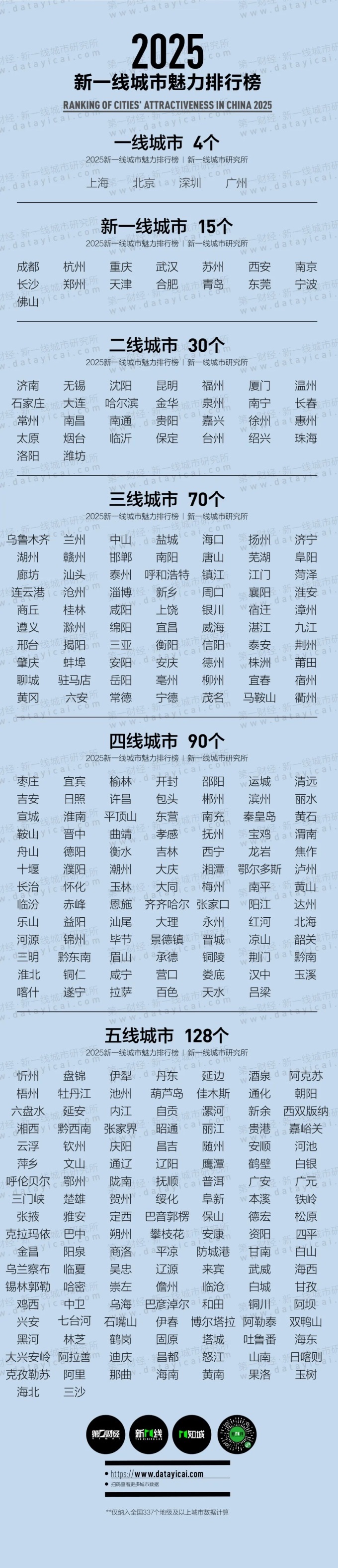 附件:2025年城市分級(jí)完整名單(包含中國(guó)內(nèi)地337個(gè)地級(jí)及以上城市)