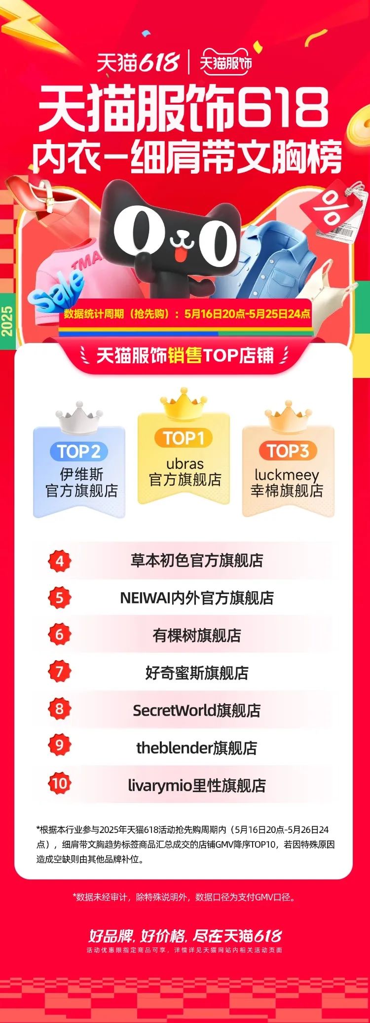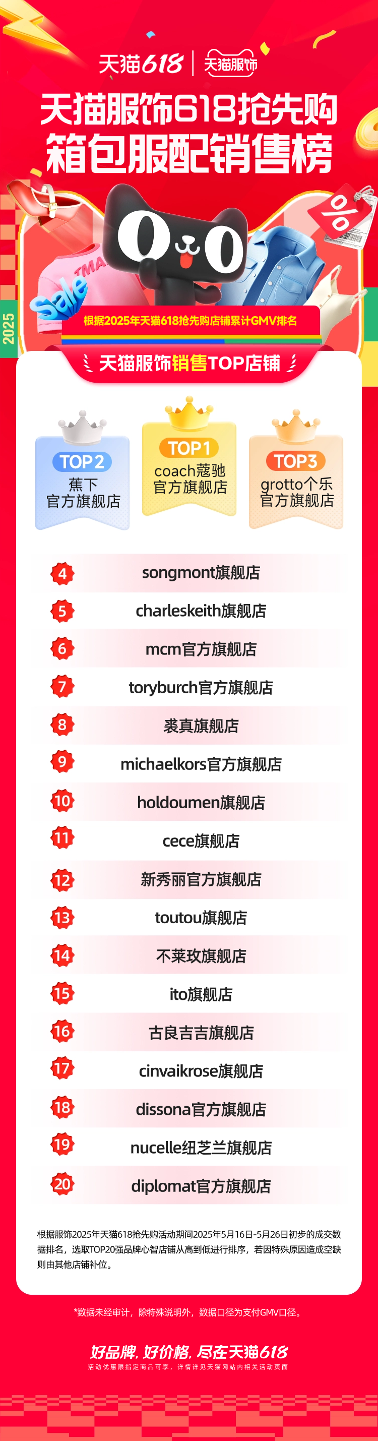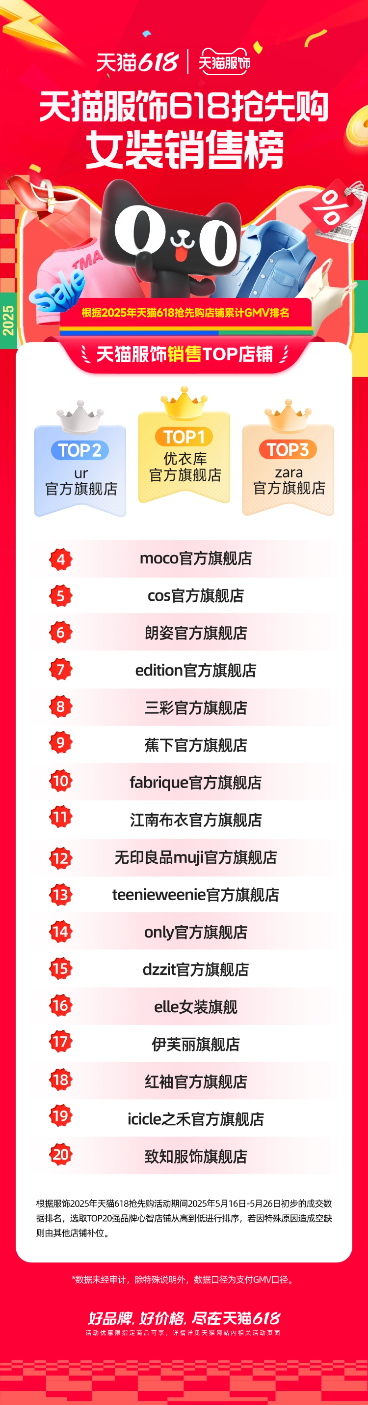 天貓服飾618搶先購爆品王商家榜顯示,優(yōu)衣庫、蕉下、crocs拿下前三。細(xì)分類目中,ubras、bolon暴龍、coach蔻馳等品牌,也憑借多款超級(jí)爆品拿下各類目第一。