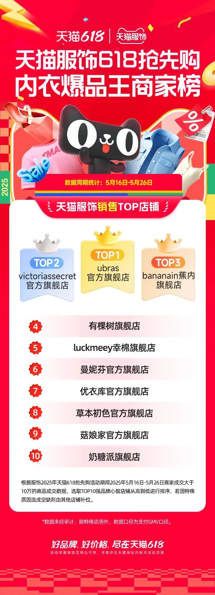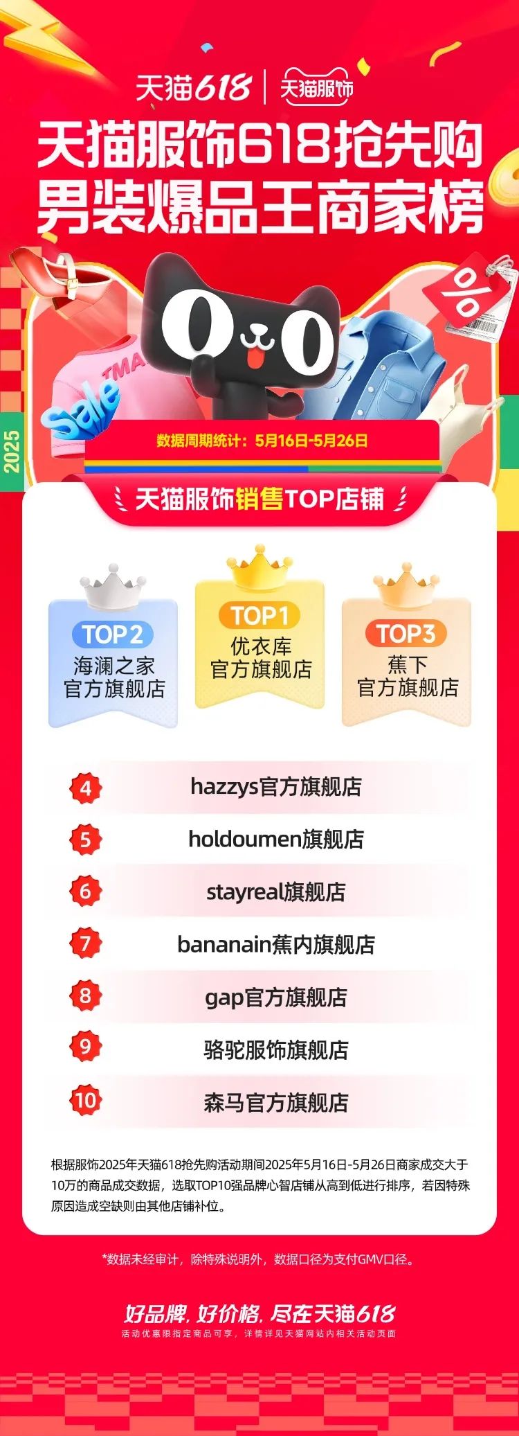 5月16日至5月26日,優(yōu)衣庫、UR、蕉下等多個(gè)品牌成交破億,近345個(gè)品牌成交破千萬,近3090個(gè)品牌成交破百萬。此外,約有1088個(gè)品牌成交同比超過500%。