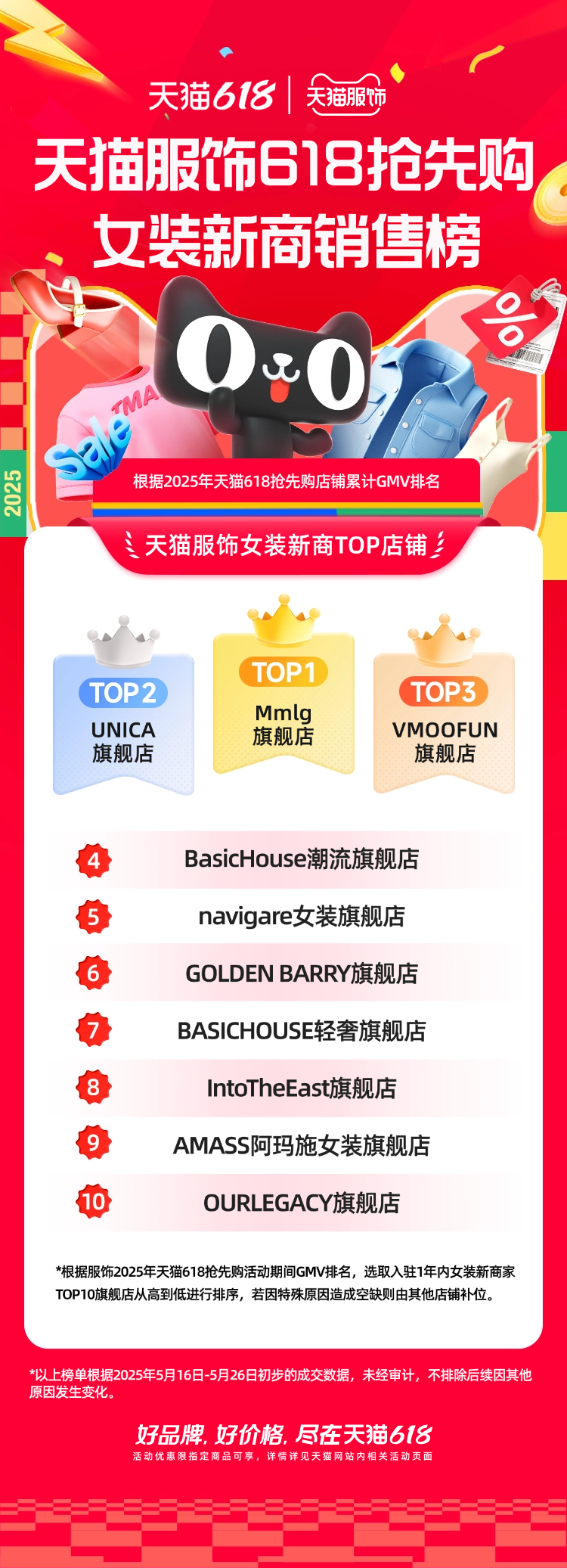 天貓618搶先購服飾新商銷售榜顯示,Holdoumen、Mmlg、UNICA登上TOP3。其中,Holdoumen過去30天銷量超70萬件,Mmlg近半年吸引20萬88VIP用戶下單,而他們?nèi)腭v天貓還不到一年時(shí)間。