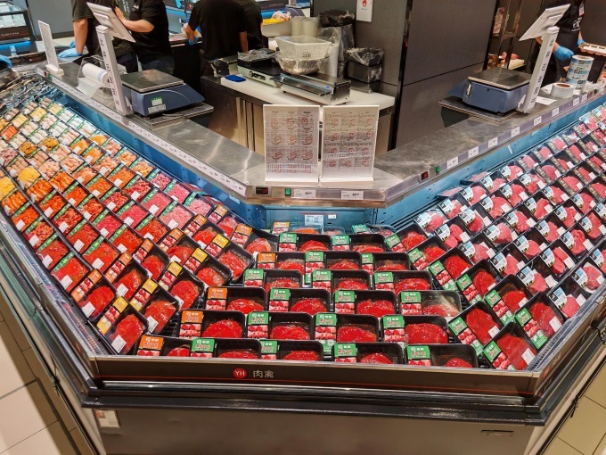 同時,服務(wù)細(xì)節(jié)全面升級。海鮮區(qū)提供活魚切片、打氧保鮮服務(wù),肉禽區(qū)提供切絲、剔骨、絞肉等服務(wù);食品貨架懸掛放大鏡,連卷袋旁配置濕手器。為適配學(xué)生社交需求,門店增設(shè)開放式休息區(qū)搭配桌椅,成為校園周邊“休憩+購物”的復(fù)合空間。
