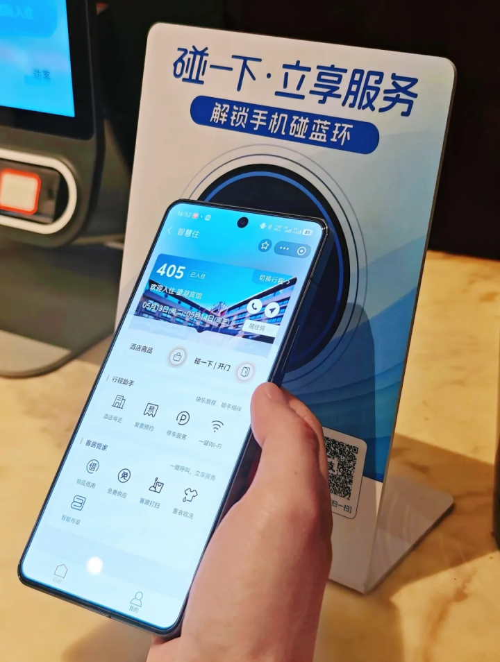 客房?jī)?nèi),“碰一下”專(zhuān)屬服務(wù)牌,即可一鍵連接WiFi、查看酒店導(dǎo)覽、預(yù)約清潔或送餐服務(wù),需求直達(dá)員工端即時(shí)響應(yīng)。離店時(shí),駕車(chē)賓客“碰一下”停車(chē)設(shè)備綁定車(chē)牌,動(dòng)態(tài)配置的停車(chē)權(quán)益策略自動(dòng)生效,專(zhuān)屬服務(wù)形成完整閉環(huán)。入住全流程0打擾,讓游客住的輕松和方便。