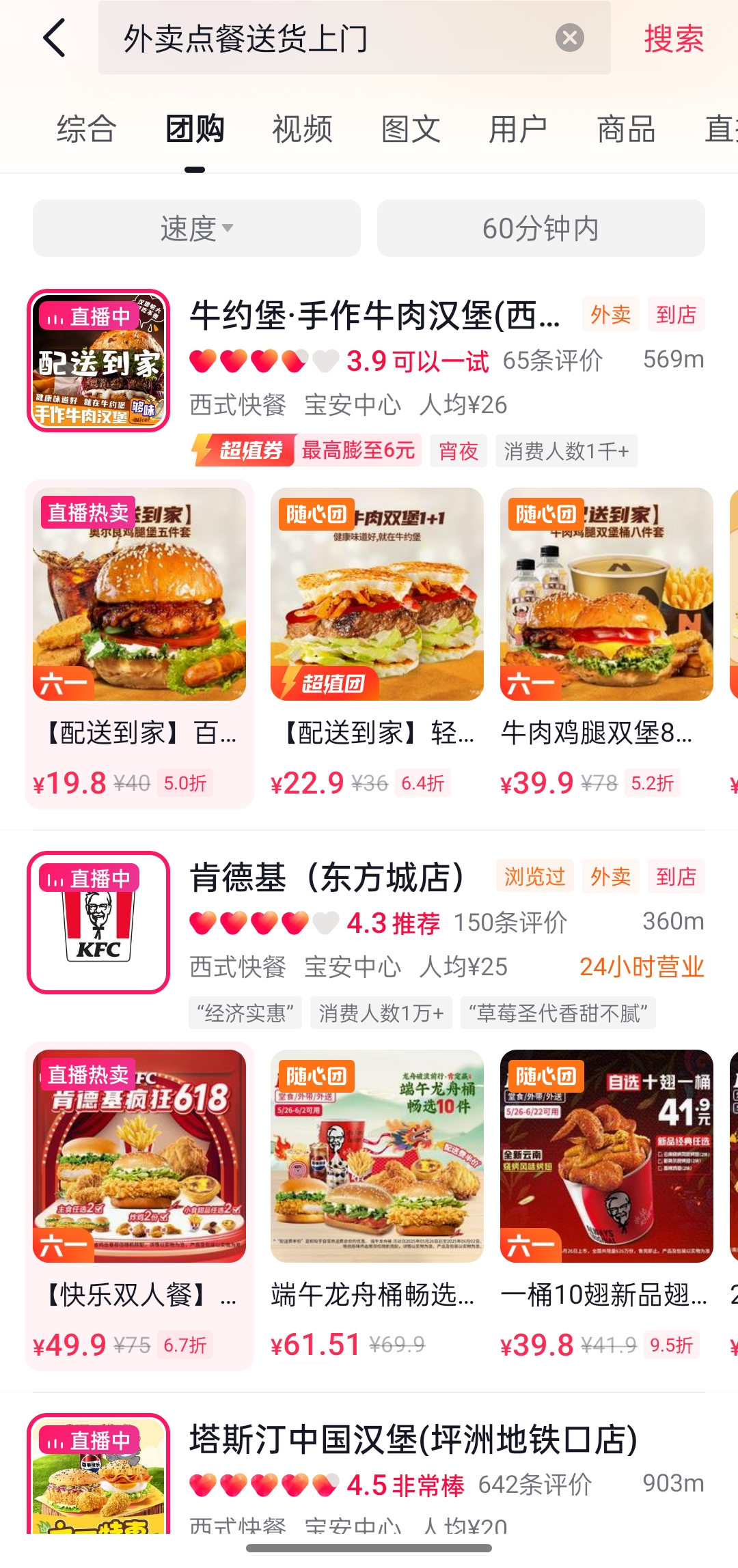 木易進入抖音APP,發(fā)現(xiàn)抖音外賣并沒有專門的流量入口。不過,用戶可以直接搜索“外賣點餐送貨上門”“外賣送上門”等關(guān)鍵詞查看提供配送服務(wù)的商家。另外,在頂部Tab“團購”專區(qū),部分商家既可以團購,也支持配送。