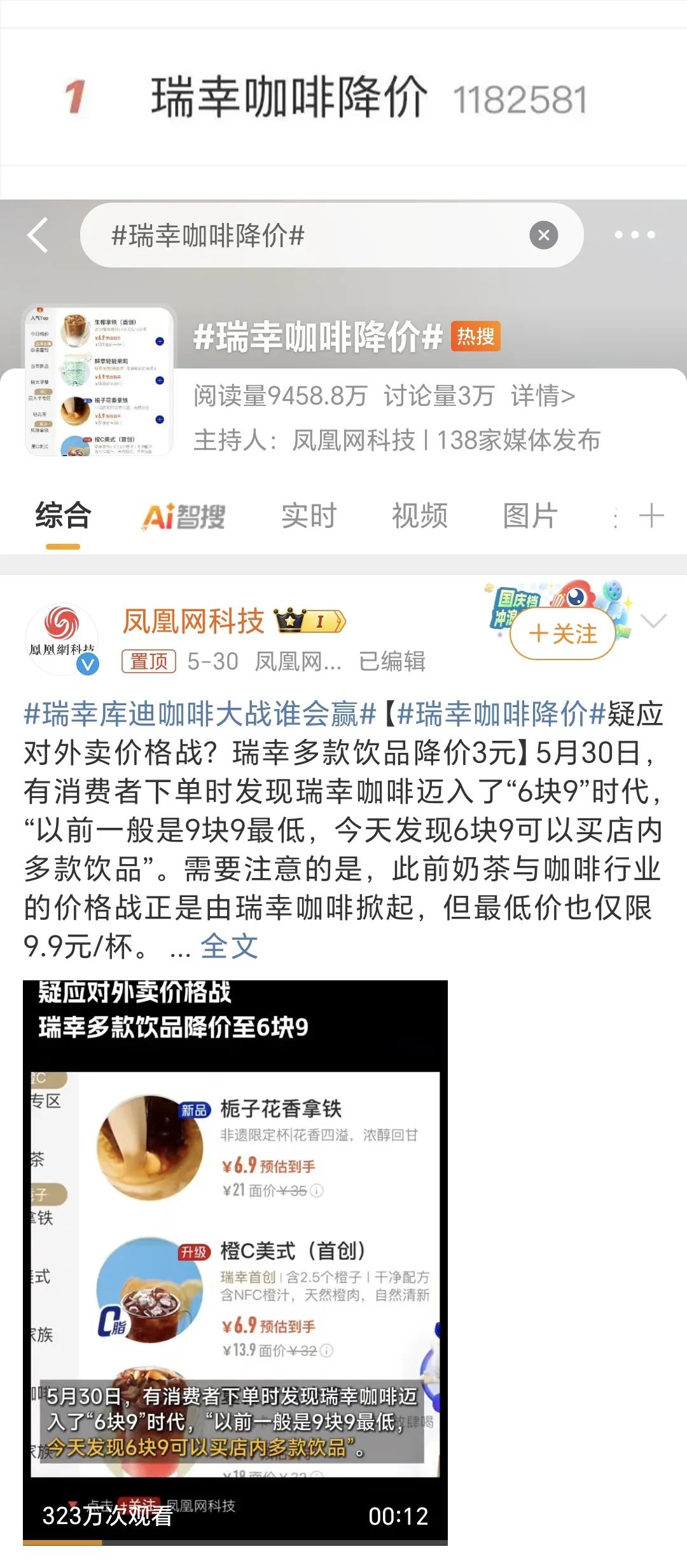 不僅引發(fā)消費者熱議,相關話題“瑞幸?guī)斓蟽r格戰(zhàn)誰會贏”,還一下子沖上了微博熱搜榜第一。