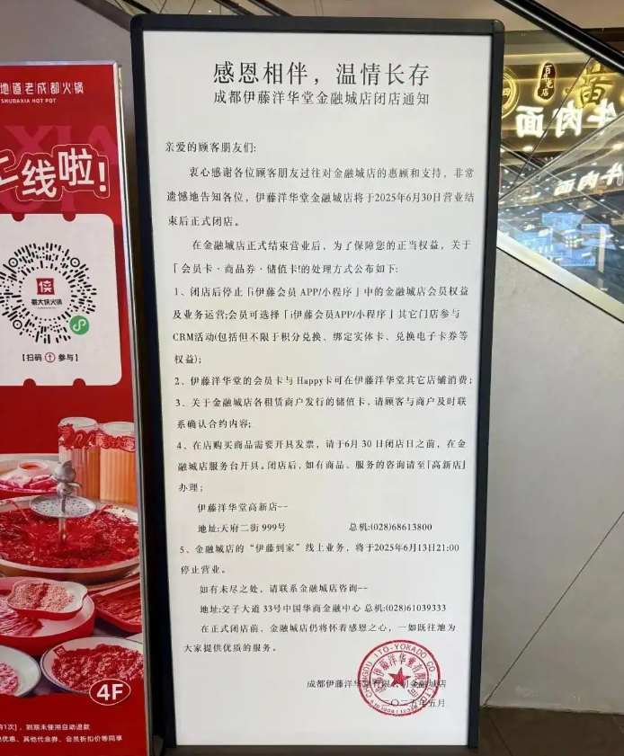 日前,有網(wǎng)友在社交平臺上發(fā)布了“伊藤洋華堂金融城店閉店通知”的照片,引發(fā)熱議。
