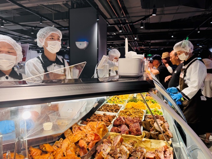 熟食烘焙區(qū)明檔現(xiàn)制,煙火氣十足。熟食區(qū)引入“胖東來(lái)同款”香辣牛肉條、小甜腸、東北鍋包肉、韓式炸雞等熱銷單品,口齒留香的多種鹵味、鮮味十足的小龍蝦和撈汁海鮮等全都為美食愛(ài)好者備齊。