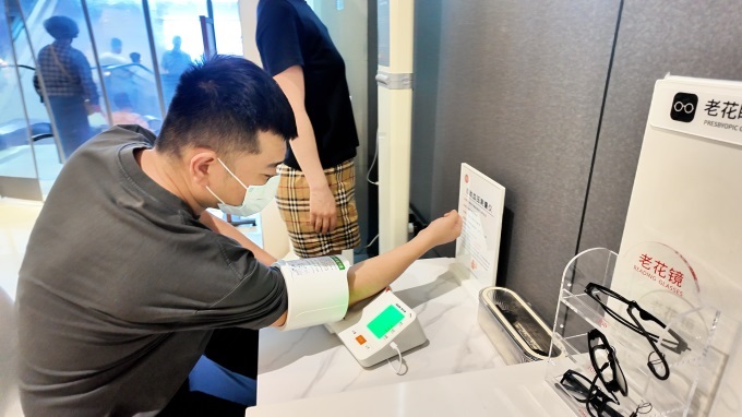 調(diào)改后的門(mén)店增設(shè)便民服務(wù)區(qū),配備血壓儀、身高體重測(cè)量?jī)x、飲水機(jī)、寵物寄存處、老花鏡、微波爐、視力表,還隨季供應(yīng)免費(fèi)花茶飲品,加上餐吧和配套桌椅,輕松實(shí)現(xiàn)邊吃邊逛。