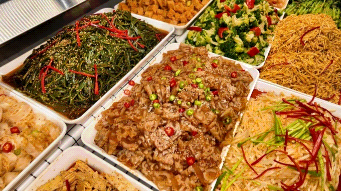 熟食區(qū)明檔操作營(yíng)造出濃郁的煙火氛圍!芭謻|來(lái)同款”甜腸、秘制牛肉條、韓式炸雞等誘惑十足。
