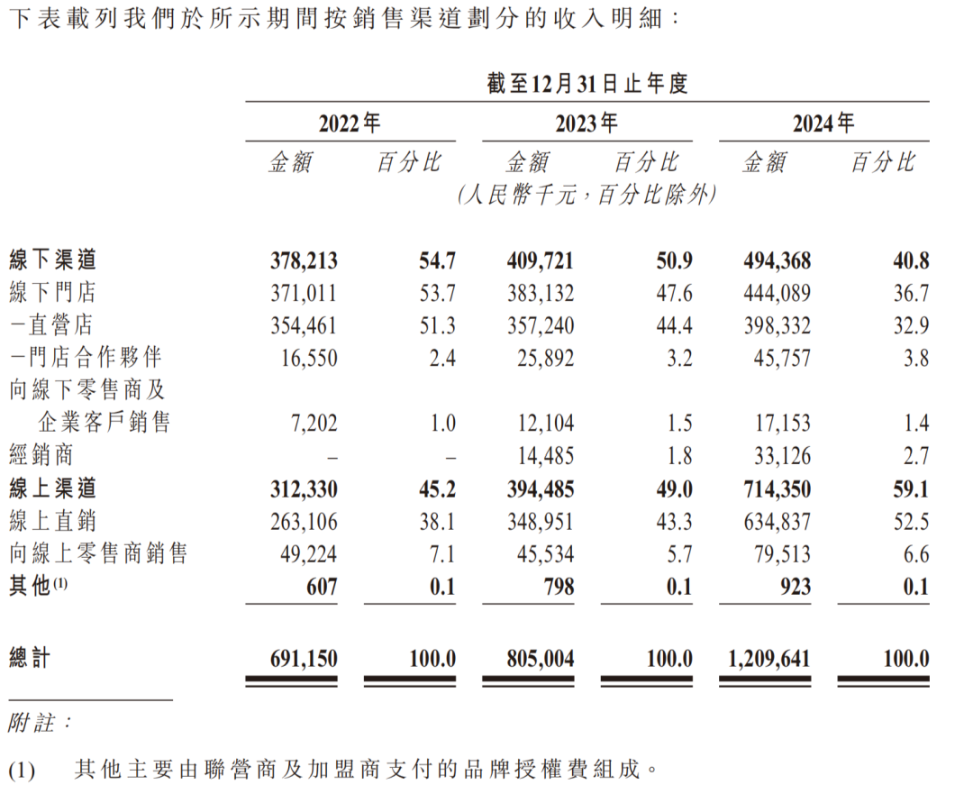 招股書顯示,2024年,林清軒線下直營門店帶來營收3.98億元,占比超過九成;而從所有合作門店(聯(lián)營+加盟)獲取的收入僅為4575.7萬元。