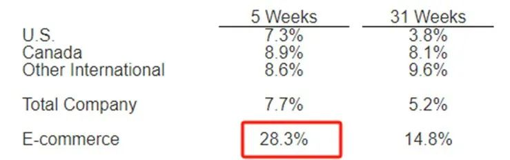 Costco官方公布的財(cái)報(bào)數(shù)據(jù)顯示,在過(guò)去的31周內(nèi),其電商銷(xiāo)售額增長(zhǎng)了14.8%。在過(guò)去的5周內(nèi),其電商銷(xiāo)售額增長(zhǎng)了28.3%,而總營(yíng)收2025財(cái)年Q3同比增長(zhǎng)8%。整體來(lái)看,該巨頭電商銷(xiāo)售額的增速比總營(yíng)收高很多。