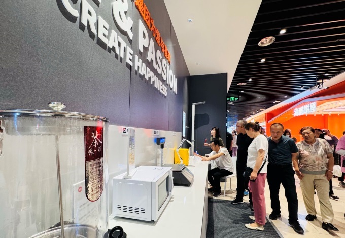 細節(jié)關(guān)懷更為貼心。在食品百貨貨架處,增設了放大鏡,讓商品信息更加“清晰”;西瓜、榴蓮、椰青等整個水果還提供現(xiàn)切、剝殼、開口等服務,方便即食。在海鮮柜臺,不僅提供周到的清洗服務,帝王蟹、龍蝦類還能免費打氧,確保海鮮的鮮活;肉禽柜臺也毫不遜色,免費為顧客提供切絲、剔骨、絞肉等服務,讓顧客省心省力。
