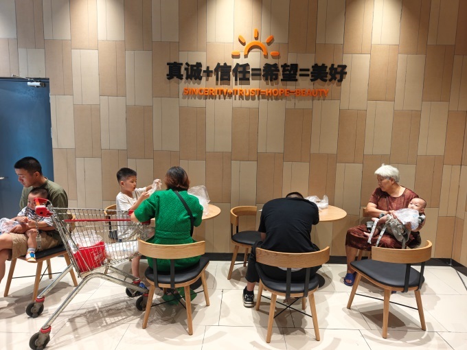 走出商品豐富的貨架區(qū),賣場在服務細節(jié)上的用心同樣令人印象深刻。在大亞灣店的休息區(qū)里,便民設(shè)施的貼心程度令人稱道,直飲水、微波爐、一次性餐具等飲食相關(guān)設(shè)施一應俱全,輪椅、嬰兒車與愛心藥箱更讓特殊需求人群感受到關(guān)懷。每張餐桌標配純凈水、衛(wèi)生紙等清潔用品,充足的休息座椅為購物者提供隨時歇腳的港灣。細節(jié)服務更是直擊痛點,寵物寄存處備有飲水,收銀臺免費冰袋為生鮮保鮮護航,充電寶與免費充電區(qū)讓電量焦慮煙消云散。
