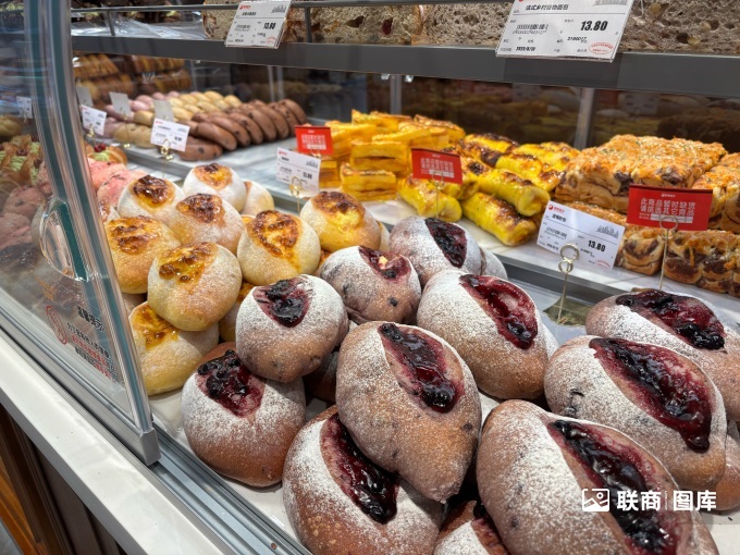 烘焙方面,門店采用現(xiàn)制現(xiàn)售模式,很多面包都是當(dāng)日現(xiàn)做,保證新鮮度和口感。同時,聚暉在原料品質(zhì)方面進(jìn)行嚴(yán)格把控,從面粉到黃油等每一種原材料都經(jīng)過精心挑選,采用優(yōu)質(zhì)食材,如爆漿榴蓮千層添加37%的新西蘭安佳淡奶油和40%貓山王榴蓮果肉;殿堂焦糖可頌蛋撻用進(jìn)口小麥粉和進(jìn)口黃油制成,使用動物奶油,不使用防腐劑。門店現(xiàn)烤類商品堅(jiān)持日清,在保證產(chǎn)品品質(zhì)和口感的同時,也確保商品更安全更健康。