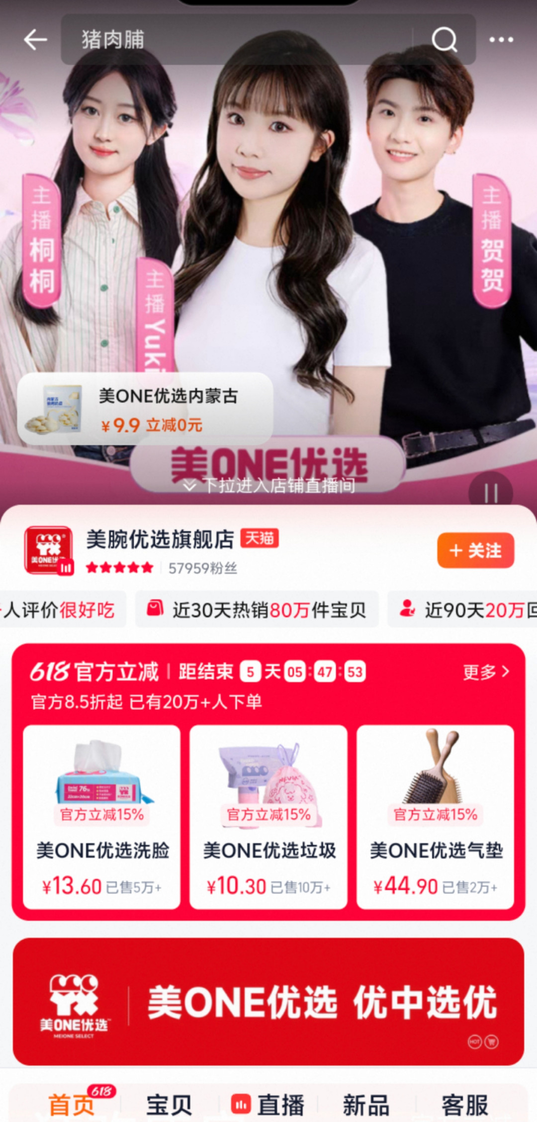 舉例來說,去年6月,李佳琦的公司美腕推出了自營品牌“美腕優(yōu)選”,并在天貓旗艦店正式上線。如今,該自營產(chǎn)品上線已滿一年,美ONE優(yōu)選的SKU已廣泛覆蓋生活、食品、寵物用品等多個品類,72款自營產(chǎn)品全網(wǎng)累計銷量成功突破250萬件,服務(wù)用戶超150萬。