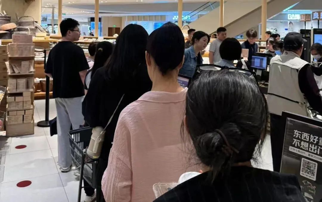 上圖是上海瑞虹天地太陽宮店晚上九點(diǎn)自助結(jié)賬機(jī)前排隊(duì)結(jié)賬的場(chǎng)面,可以看到,店內(nèi)客流很大。這家地處虹口的店位于商場(chǎng)的負(fù)一樓,但客流絲毫不輸繁華社區(qū)街邊的門店。