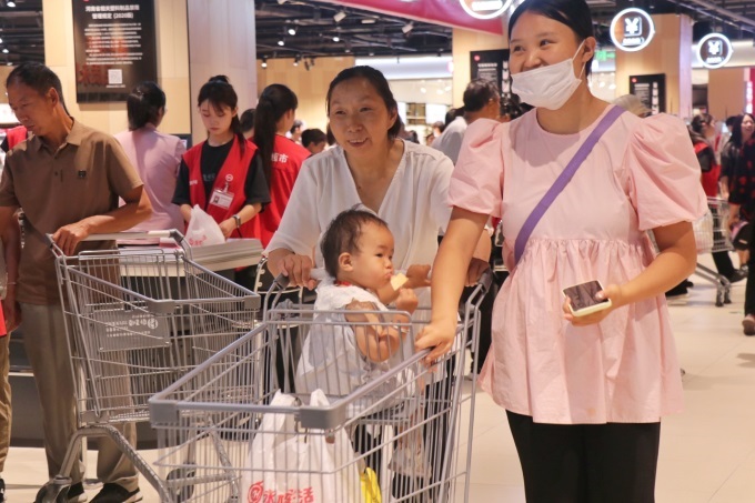 超市貨架布局也進行了全面調(diào)整,中島貨架高度由原來的2米至2.4米統(tǒng)一調(diào)整為1.6米,層數(shù)精簡至5到6層,主打一個視野通透開闊的“無壓購物空間”。