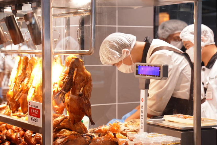 據(jù)悉,調(diào)改后的烘焙全部改為自營(yíng)模式,杜絕使用代可可脂、氫化植物油、人造奶油等原料,同時(shí),在產(chǎn)品的煥新上除了引入最近爆款的豐收的喜悅、核桃滿滿外,提拉米蘇、巧克力誘惑也成為一大亮點(diǎn)。而與之相鄰的熟食區(qū)香氣誘人,成為了流量擔(dān)當(dāng),中山石岐乳鴿以“脆皮爆汁”贏得口碑;秘制烤豬主打金黃酥脆外皮和獨(dú)家腌料;溫氏手撕雞則以咸香嫩滑、十二道工藝制作為特色;還有備受附近上班族推崇的手工肉包,選用散養(yǎng)豬腿肉餡和老面發(fā)酵。連同雙匯甜腸、九多肉多豬蹄、煌上煌小鹵、正大烤雞、皇冠三文魚等多樣風(fēng)味,構(gòu)成了豐盛的即食熟食矩陣。