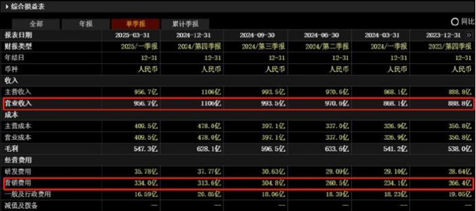 數(shù)據(jù)顯示,其總營收同比增長10%,達(dá)到956.72億元,看似還在增長,但凈利潤卻同比下降47%,僅為147.42億元,這可是公司上市以來利潤下滑最猛的一次。