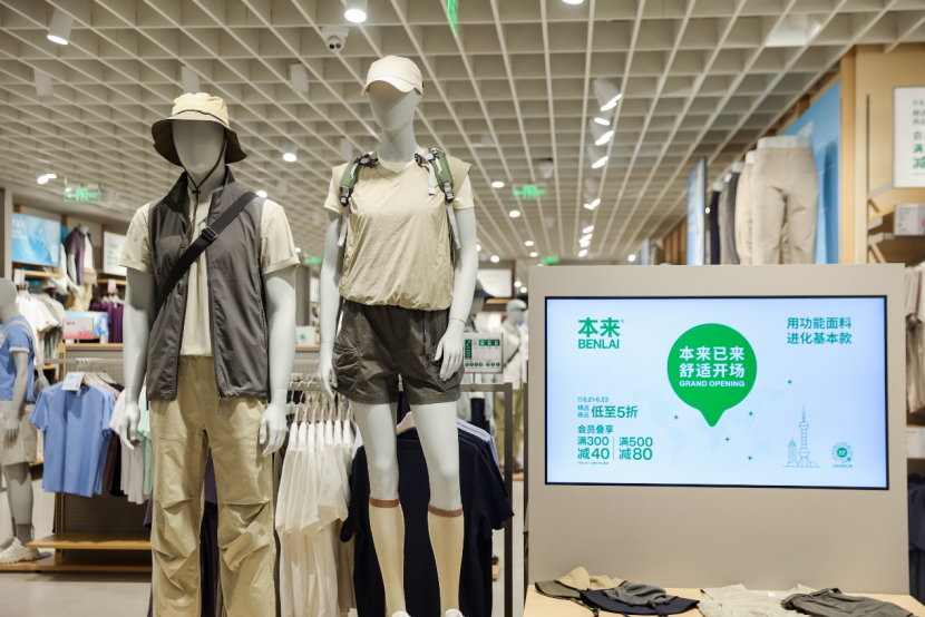 6月21日,快時尚品牌URBAN REVIVO(UR)的兄弟品牌——功能面料基本款品牌“本來(BENLAI)”在上海千樹商場L層啟幕其上海第二家門店。
