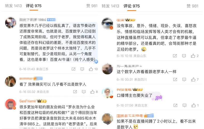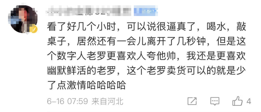 還有人說數(shù)字人直播雖然能夠以假亂真,但一切都是被固定好了的程序,沒有真人直播的意外和失誤,讓觀眾少了許多樂趣!皶(huì)罵街的才是正經(jīng)的老羅”。