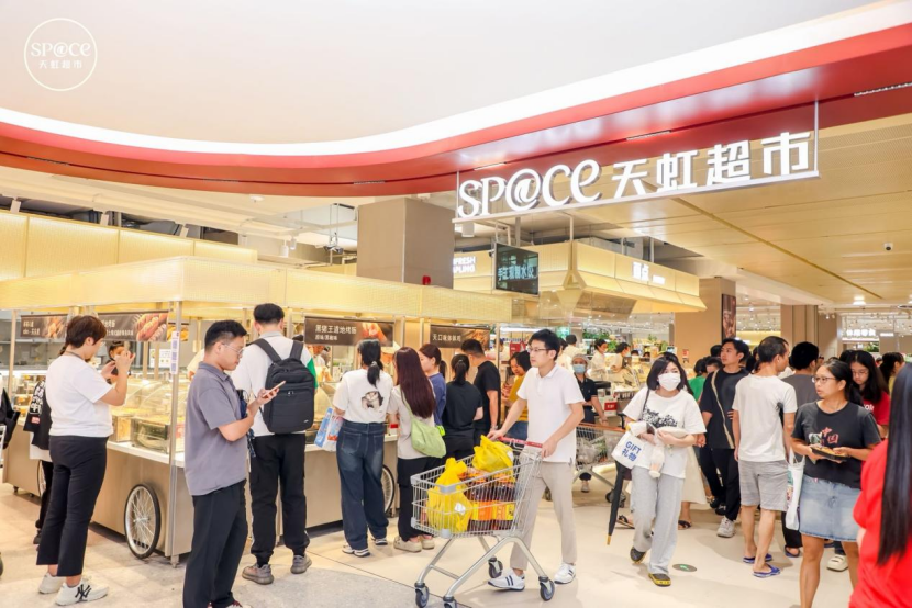 ·煙火市集:設(shè)十幾個(gè)攤位,現(xiàn)場(chǎng)制作關(guān)東煮、炸物、涼拌菜等熟食。sp@ce3.0擴(kuò)大了該區(qū)域,實(shí)現(xiàn)了生鮮運(yùn)力迭代。